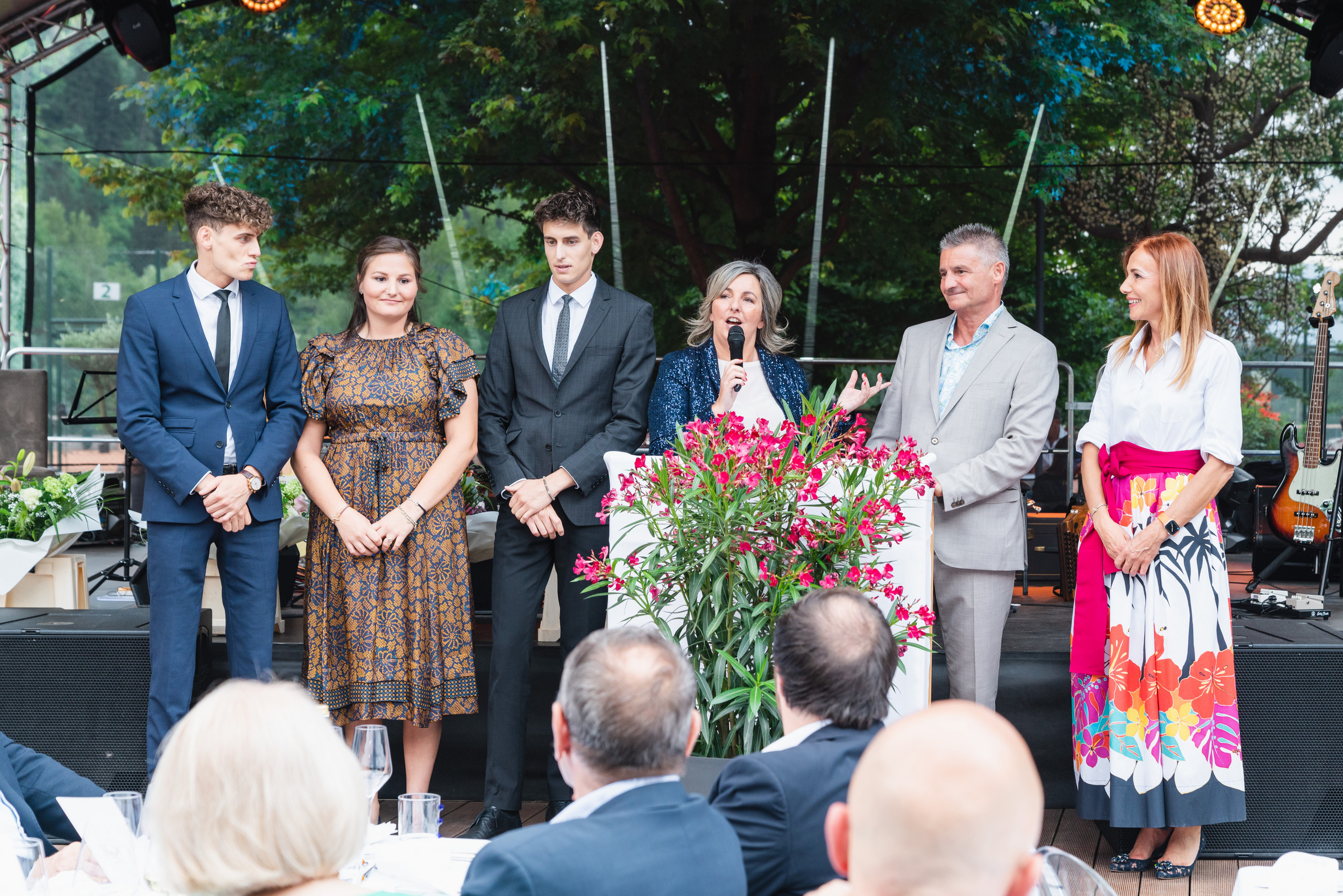 Nachdem alle Gäste vollständig eingetroffen waren, erfolgte die feierliche Begrüßung und Ansprache durch Familie Dorfer und die geladenen Ehrengäste. Stellvertretend für alle Mitarbeiter, die bereits seit über 30 Jahren für den Quellenhof tätig sind, wurden dabei einige ganz besondere Mitarbeiter geehrt: Rezeptionsleiter Erwin Weger, Gouvernante Besma Jeridi, Serviceleiter Fuzzy Ellemunter, Chefkoch Michael Mayr, Maître Matteo Lattanzi und Direktor des Quellenhof Lazise Stefan Margesin.